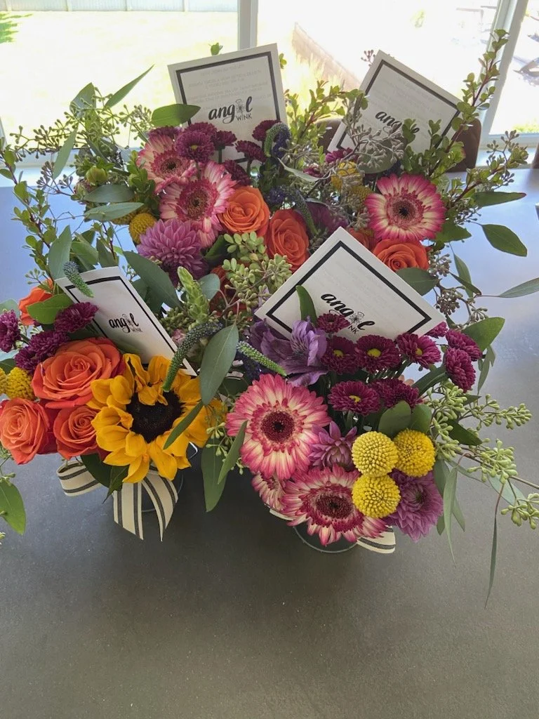 All flowers are delivered with an Angel Wink card, but no signature. Believe us, the mystery of the sender makes it more fun.